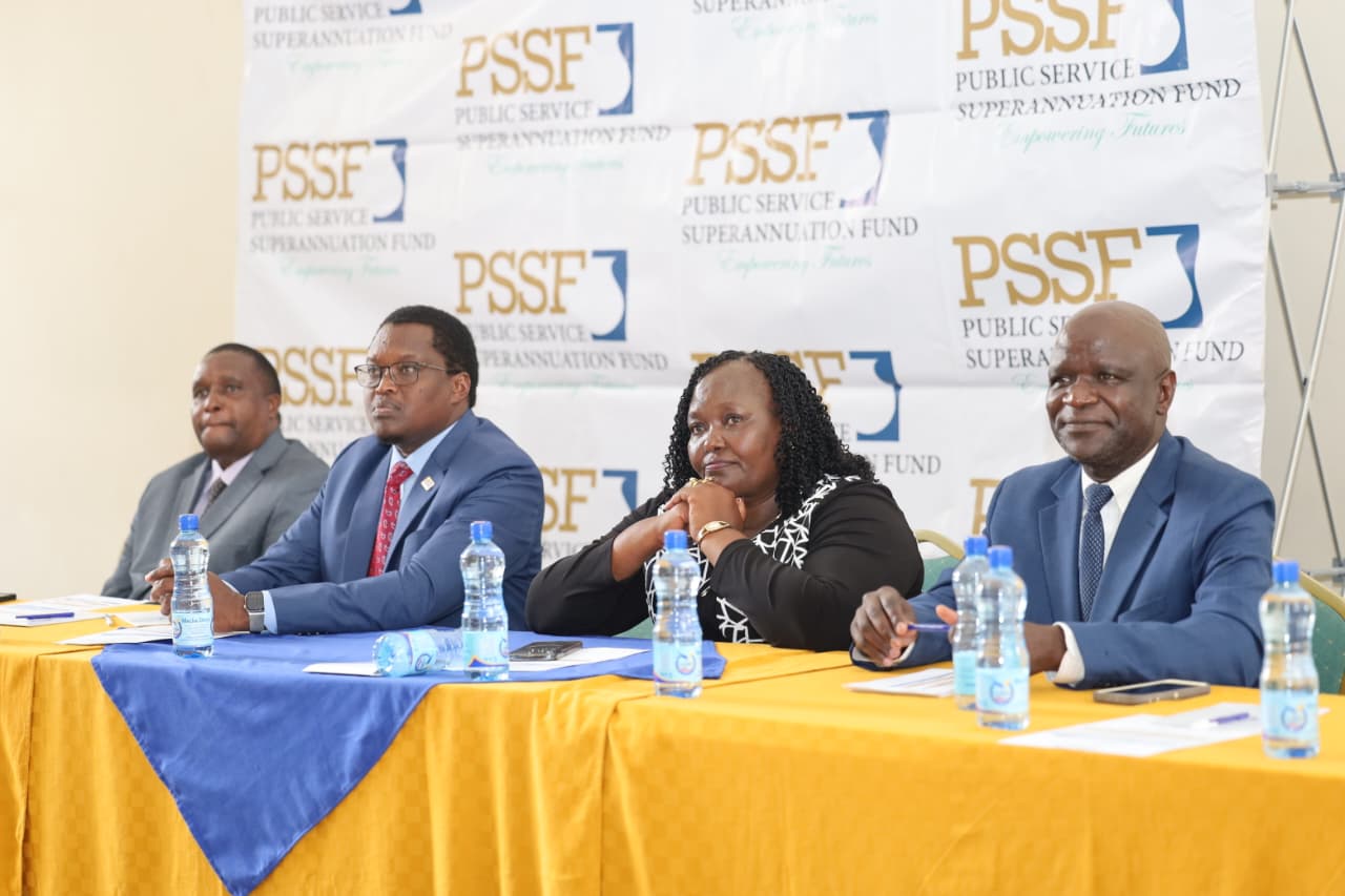 Vice Chair Agnes Mwenda, Trustee David William Okoth Ochiel, CEO Dr. Jonah Aiyabei, and Ag Manager, Benefits Administration